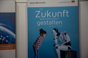Die Hauptthematik wird beim Gang durch die ersten Hallen schnell deutlich. Die Messeleitung hat sie mit den Worten es gehe „um das Verhältnis von künstlicher Intelligenz und Industrie 4.0“ umschrieben. Die entsprechenden Begriffe tauchen in den Hallen immer wieder auf.