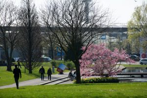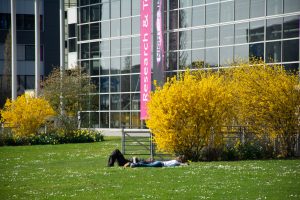 Doch bevor wir in die Hallen schauen , genießen wir bei strahlendem Sonnenschein den Tag. Wer konnte, streckte sich auf dem frisch gemähten Rasen aus oder schaltete auf der Parkbank mal das Messegeschehen aus.